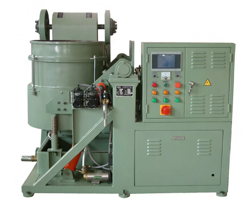 1、采用PLC控制系统,可对设备进行编程操控。是我公司生产的一款全自动流动式光饰机。 2、该设备具有自动上料、自动加水加液、自动研磨、自动出料、自动分选等功能。 3、分选筛筛孔尺寸可根据用户需求定制,并可随时更换。 4、该机型由变频器调节旋转盘转速,节能实用,转盘转速可调。 5、该机型设有单研磨桶和双研磨桶两款。双研磨机型的2个桶可共用一套分选装置。